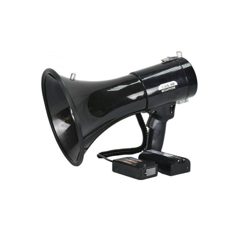 Megafoni VOX-60 (60W) ofron fuqi të lartë zëri dhe prakticitet të plotë me bateri të rikarikueshme dhe Bluetooth. Pajisja përfshin porta USB dhe SD, si dhe funksion regjistrimi (REC) për mesazhe zanore. Ideal për përdorim në terren apo aktivitete publike.